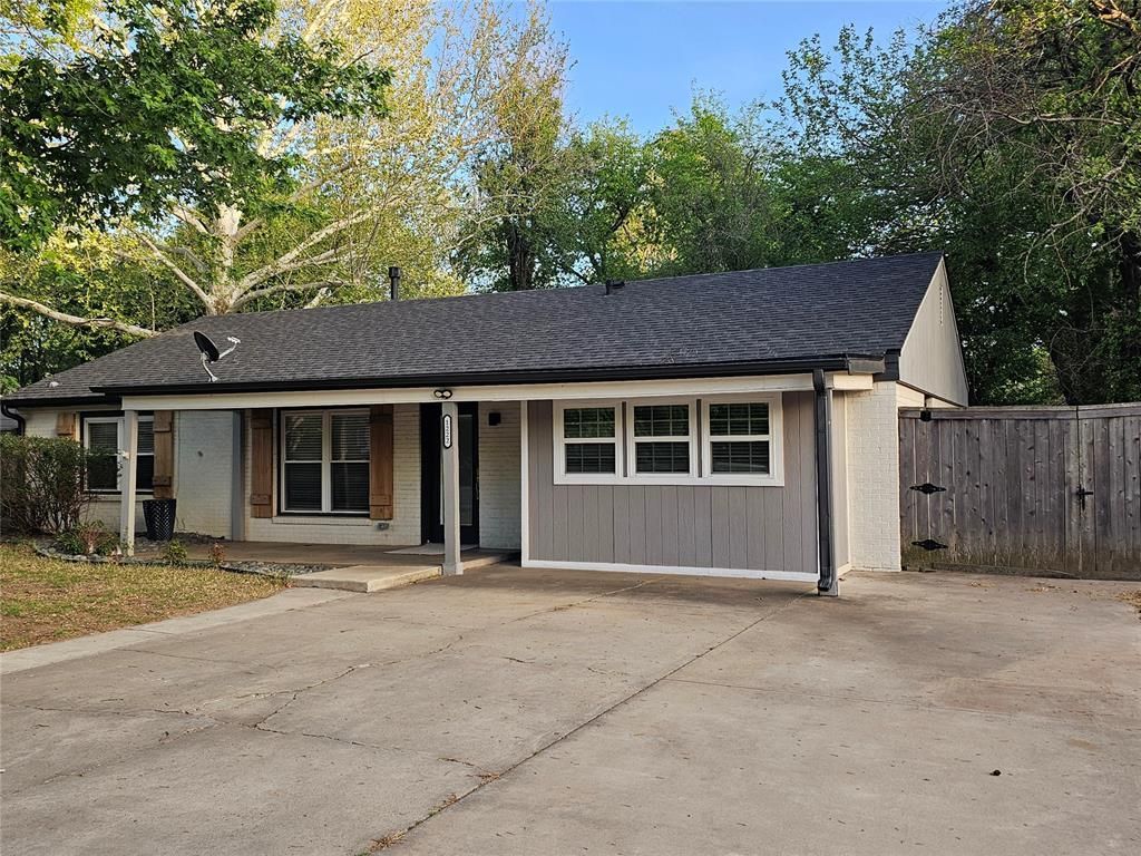 Spacious 4-bedroom split-plan home in Southwest Norman offering updated features and exceptional living space. The extra-large living area includes vaulted ceilings and a fireplace, creating an open and inviting central gathering space. The updated kitchen features granite countertops, stainless steel appliances, and an adjacent dining area. The primary suite includes an updated bath with a soaking tub and separate shower.Exterior features include a covered front porch, open patio, storage shed, extra parking, and dedicated RV parking. The large yard is shaded by mature trees and provides plenty of room for outdoor enjoyment. Major system updates include electrical and heat/air improvements, offering added peace of mind. A well-maintained property in a desirable Southwest Norman location.