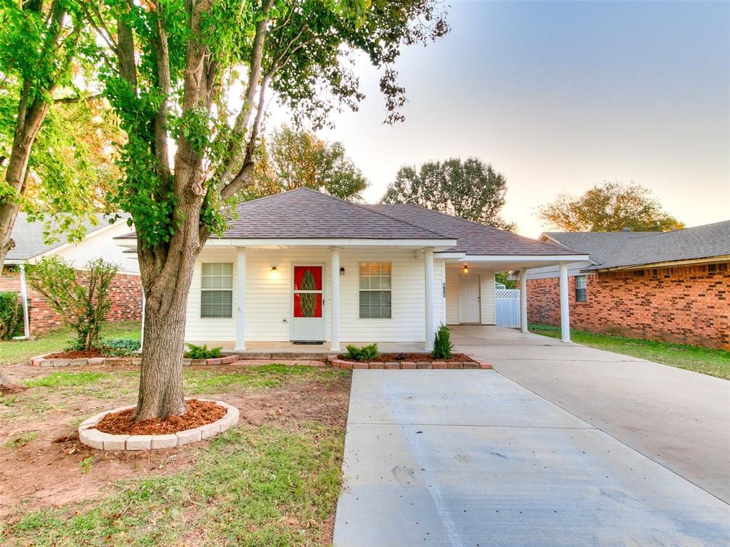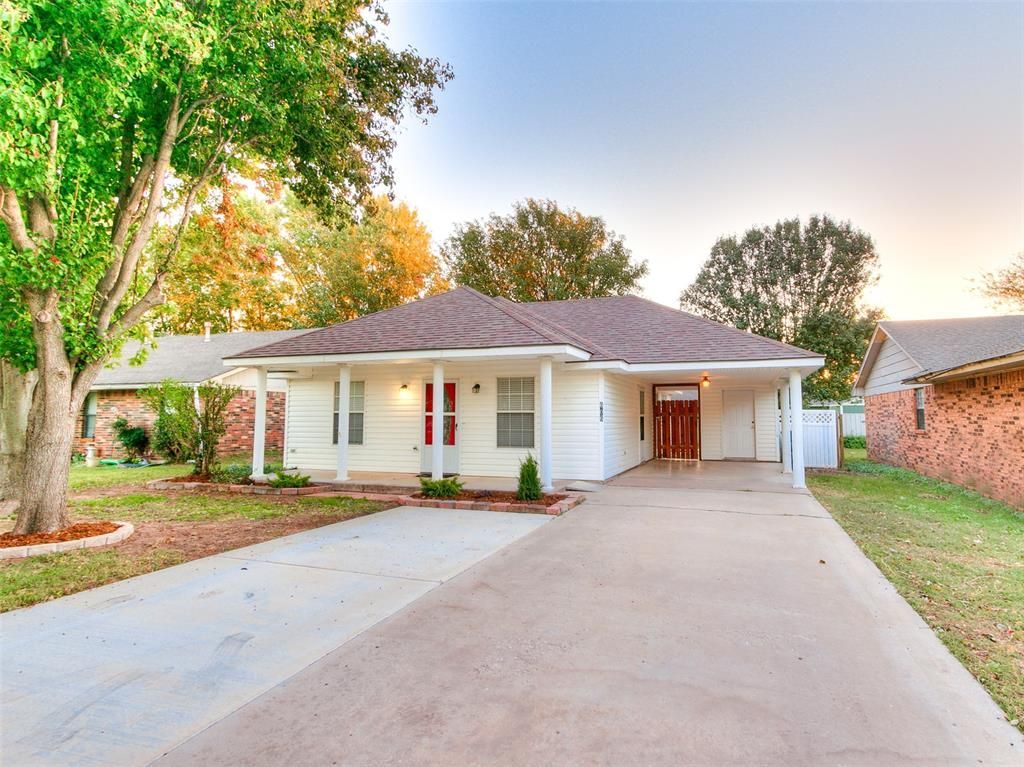 This is a 1014 Square foot two bedroom one bathroom single family home is located in Lexington Oklahoma. Features covered parking in the driveway with multiple off street parking spots. It has a small outbuilding for storage and an open patio/deck.